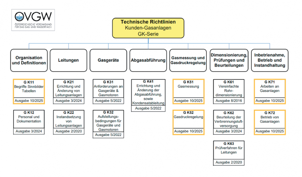 Mit Oktober 2025 werden einzelne ÖVGW-Richtlinien für Kunden-Gasanlagen (G K-Serie) wieder aktualisiert.
