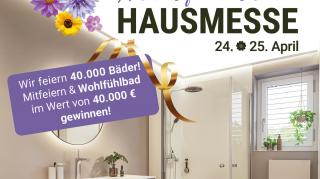 40.000 renovierte Badezimmer Die Hausmesse findet am 24. und 25. April von 9 bis 17 Uhr statt · Viele Viterma Standorte in Deutschland, Österreich und der Schweiz nehmen teil.
